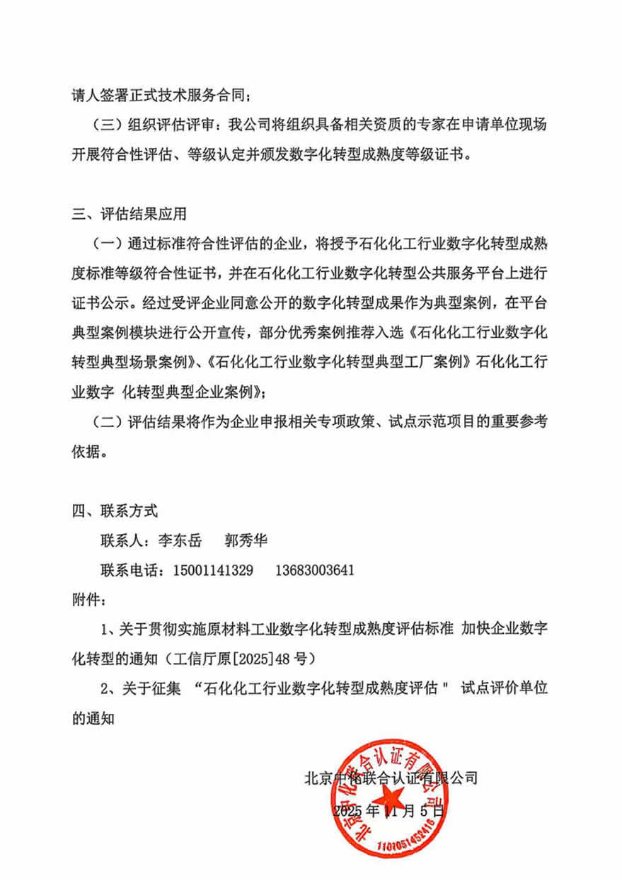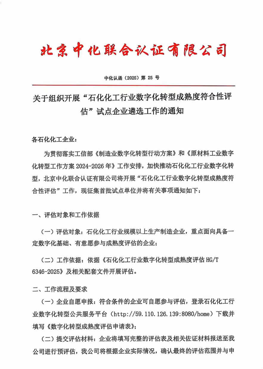 石化化工行业数字化转型成熟度符合性评估”试点企业遴选工作的通知